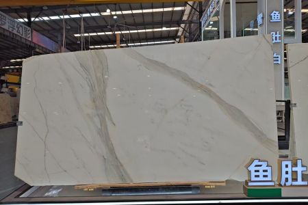 #易达鱼肚白🇮🇹 每日分享 编号:YD122 鱼肚金 尺寸:3480✖️1820✖️18,3件145平 顶奢鱼肚金,非常简单大气灵动的纹理,超大板面,做台面,岛台,餐桌都是的。肉眼可见的油润。 同款鱼肚金还有