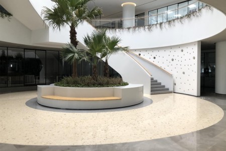 无机洞石是一款成熟环保墙面饰材,无机环氧 进口磨石备受项目的喜爱。无机洞石的应用亮点 作为城市中的建筑、特别是商业建筑它们需要能给客户留下印象、就需要对它的建筑外面做好一定的美感或者说是吸睛点,然后千篇一律的建筑造型和外观已经不能让人们留恋往返,所以当前需要一款新的建筑外立面材料满足这样的需求。