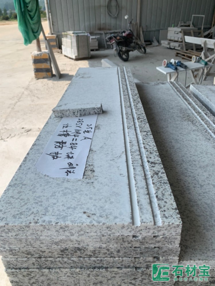 芝麻白石材光面楼梯踏步定制加工湖北随州白麻中花白麻矿山供应业务电话1