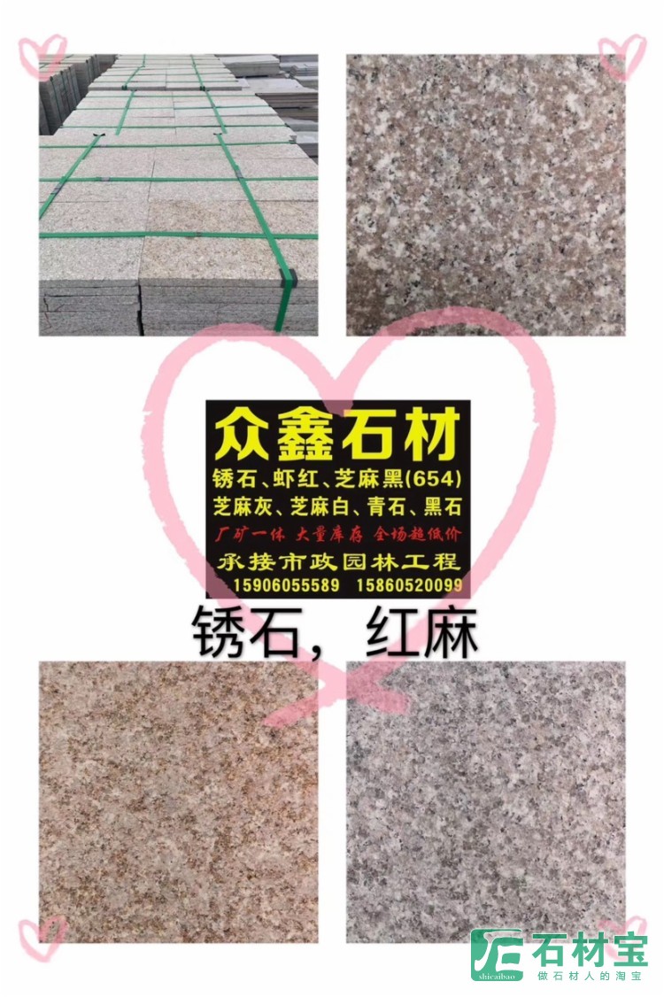 大量供应:虾红、绣石、芝麻灰688.633、芝麻白603、芝麻黑654,新654(钟山青),五连红,罗源红等300x600国内外花岗岩现货·荒料,长期库存80000平方,需要的朋友欢迎咨询选购☎️ 众鑫堆场:13506020822