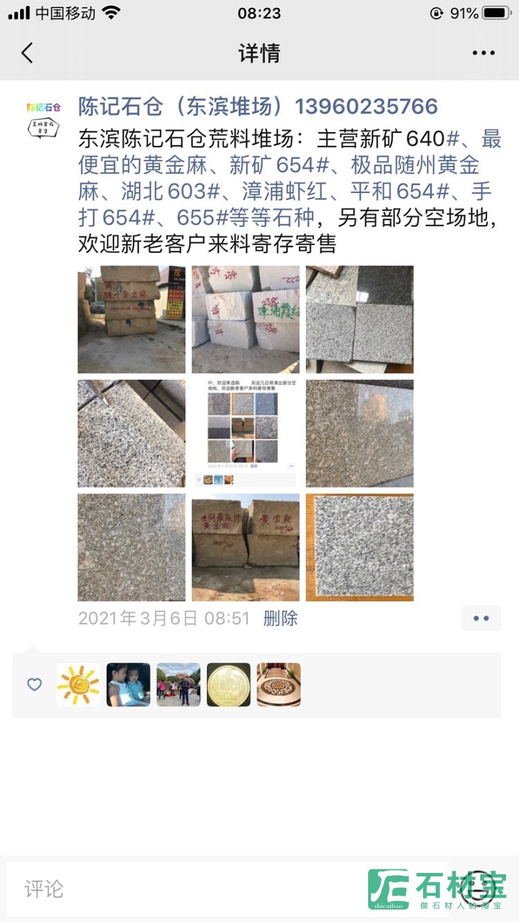 东滨陈记石仓荒料堆场:主营新矿640#、Z便宜的黄金麻、新矿654#、随州黄金麻、湖北603#、漳浦虾红、平和654#、手打654#、655#等等石种,另有部分空场地,欢迎新老客户来料寄存寄售