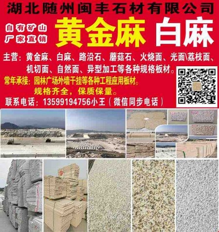 湖北随州闽丰石材有限公司 拥有矿山开采权 厂家直销 【主营】黄金麻,白麻,路沿石,蘑