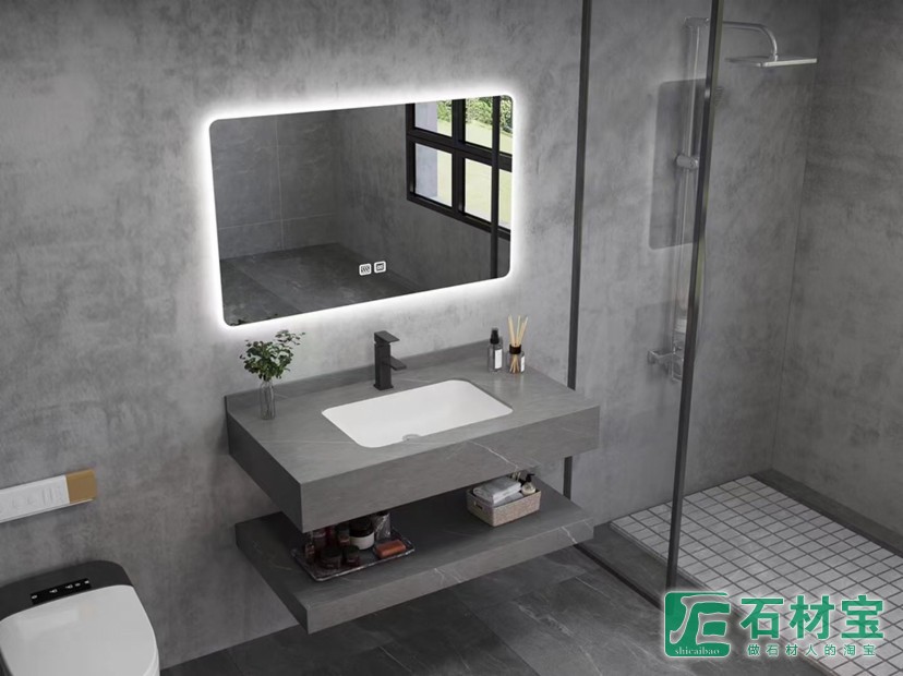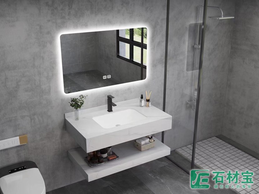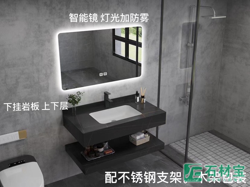 岩板台面,陶瓷台下盆,配智能镜灯光加除雾,长度80公分,宽度480,下挂150,三色可选,大量库存,现货发售,超低价格,包含木架,安装支架,整体4件套499元一套!