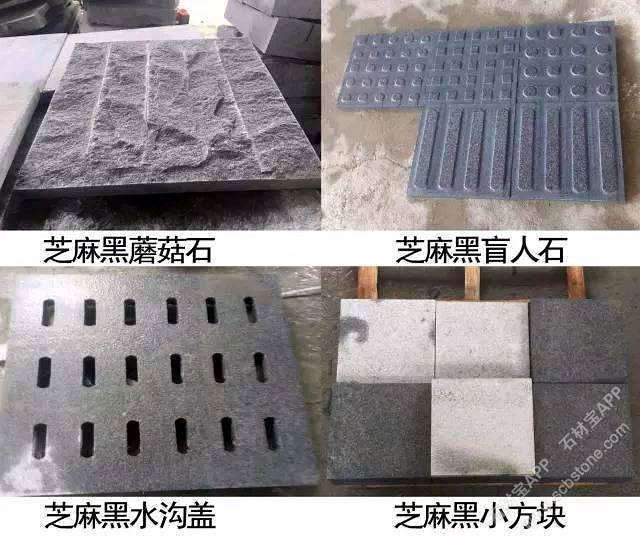 芝麻黑新老矿、鲁灰新老矿、芝麻灰、挡车石、圆桌、毛石自然面