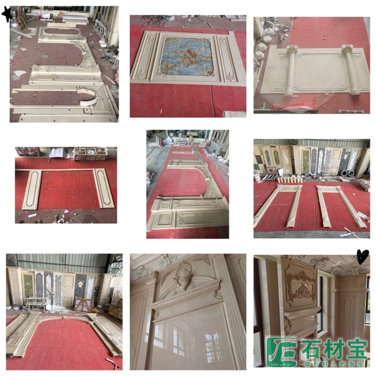专注天然大理石各种异形工艺家私DY台面圆柱石线手工精雕水刀拼花背