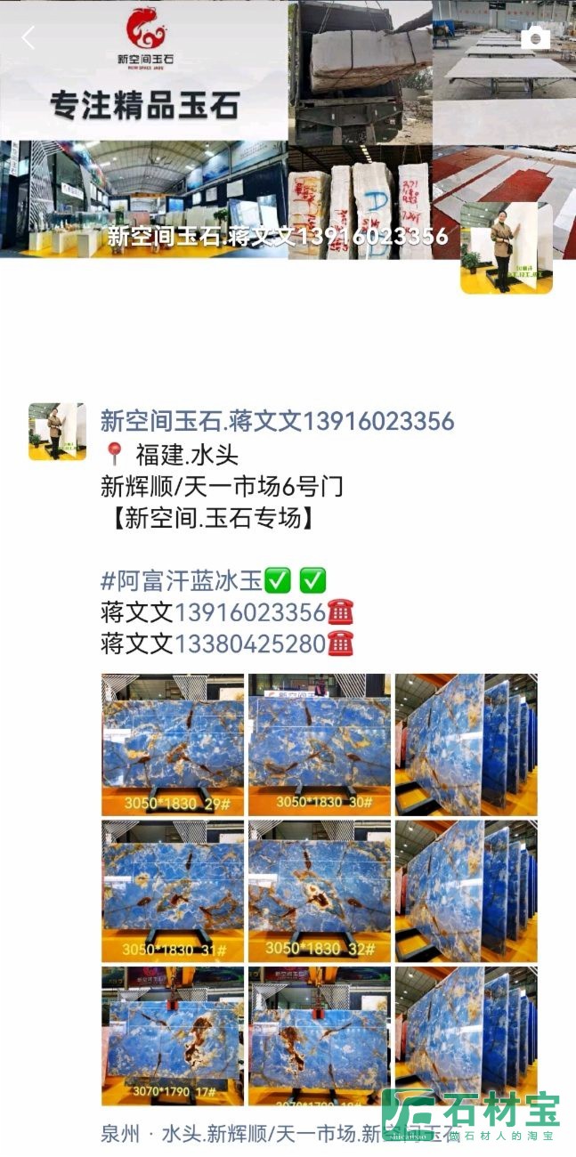 📍 福建.水头 新辉顺/天一市场6号门 【新空间.玉石专场】 #阿富汗蓝冰玉✅ ✅ 蒋文文13916023356☎️ 蒋文文13380425280☎️