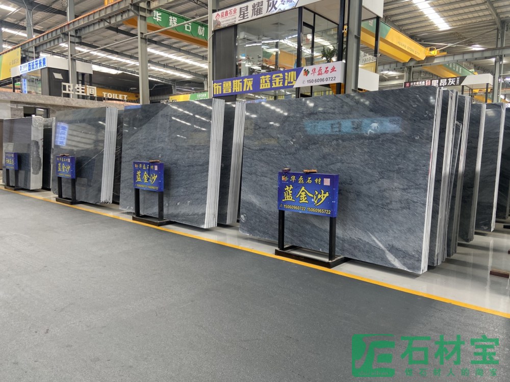华磊石业布鲁斯灰意大利蓝蓝金沙卡地亚灰广西白大板18厚荒料均有欢