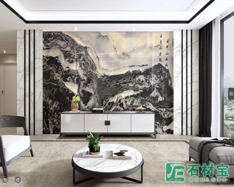 山水画,天然石画,背景墙