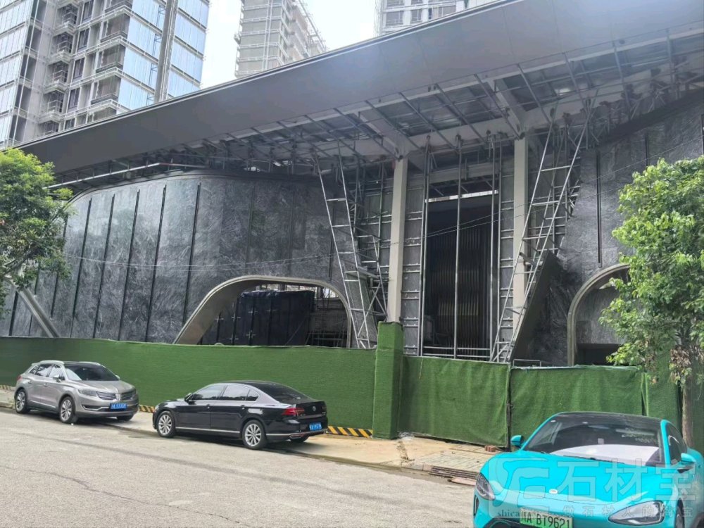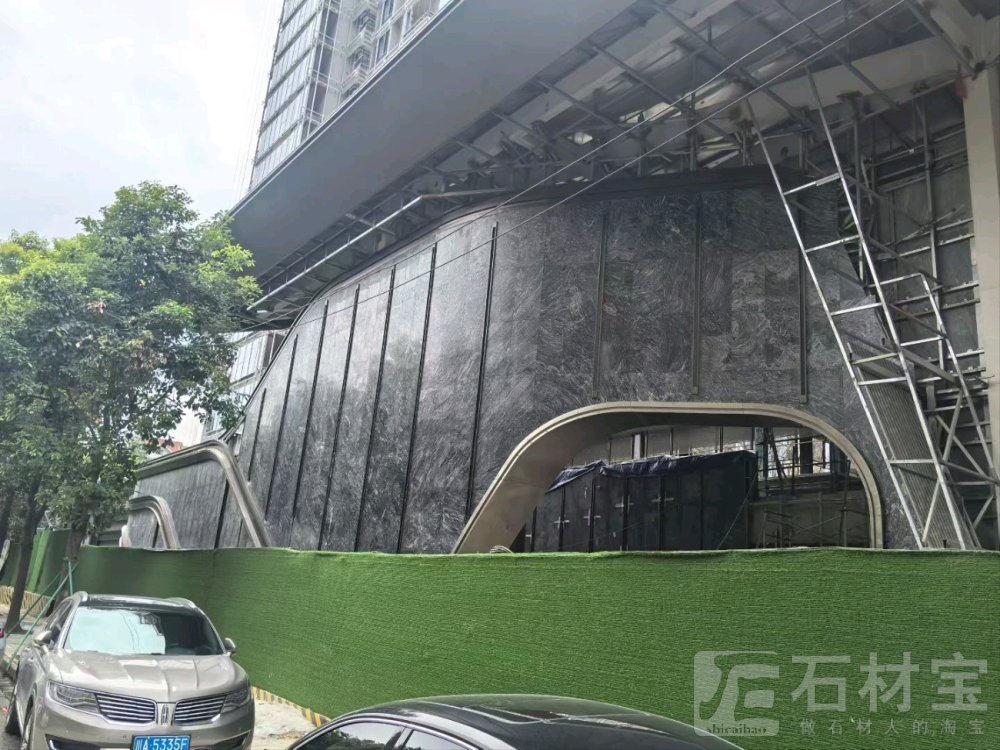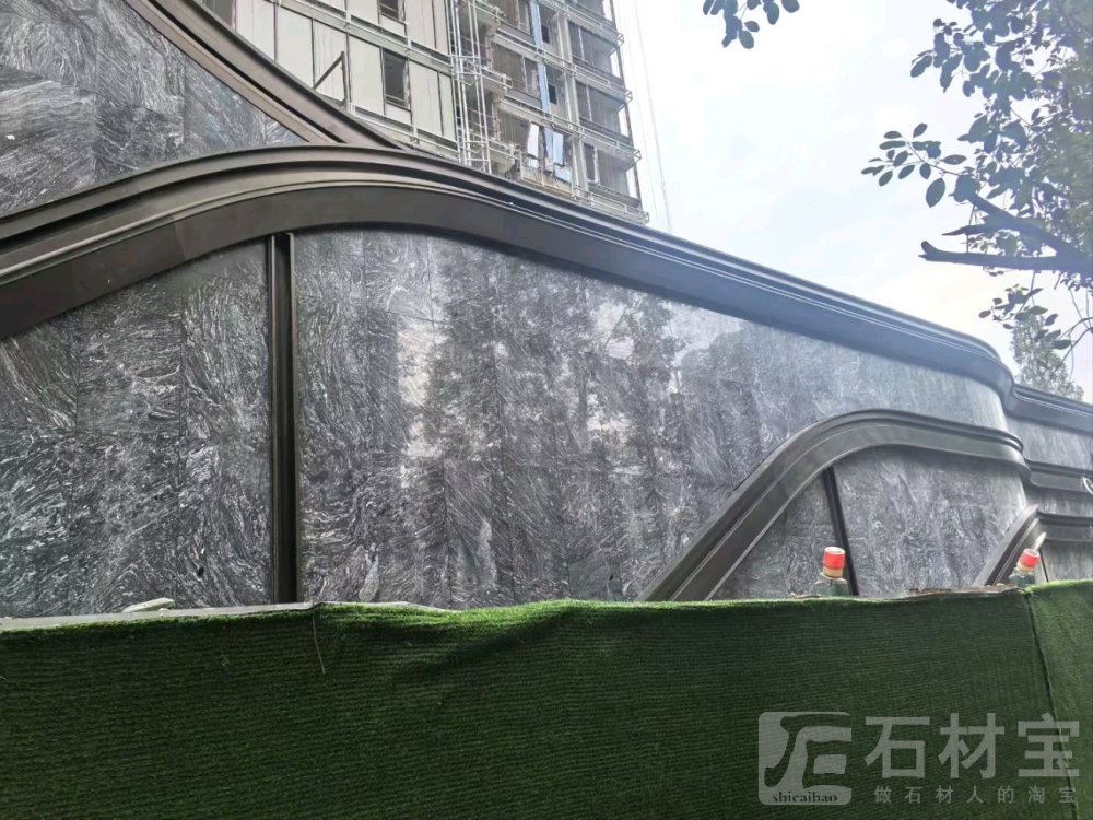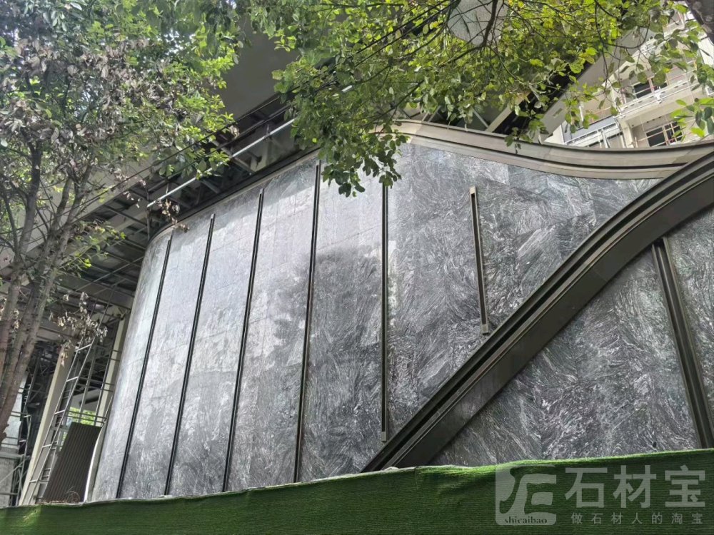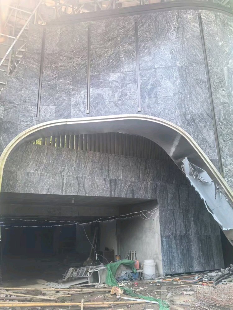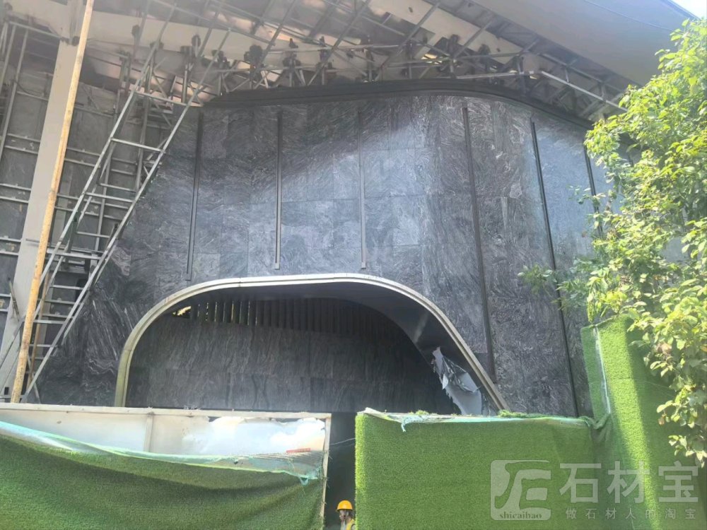 | 商业综合体,外墙干挂,选用湖北麻城黑底浪淘沙 |