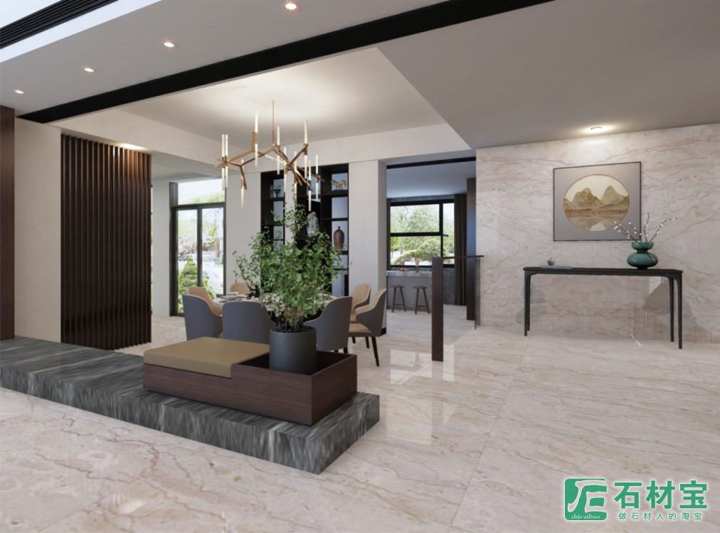 | 该案例主要使用的材料有:美姬塔米黄等 |