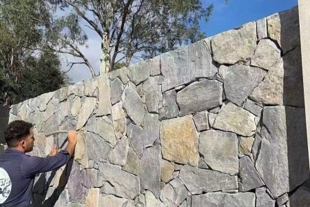 天然碎拼石,贴墙,铺地均有厚度订做。天然碎拼石无任何化学试剂,环保。户外耐雨淋,不易褪色。